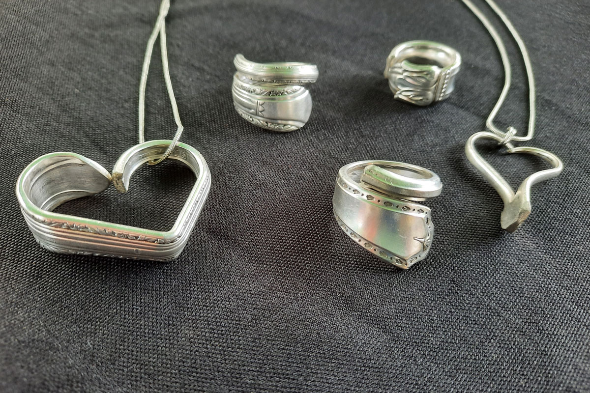 Spoon Rings, Jewelry, & Notions made out of repurposed Silver Plate Silverware in Chewelah, Washington.